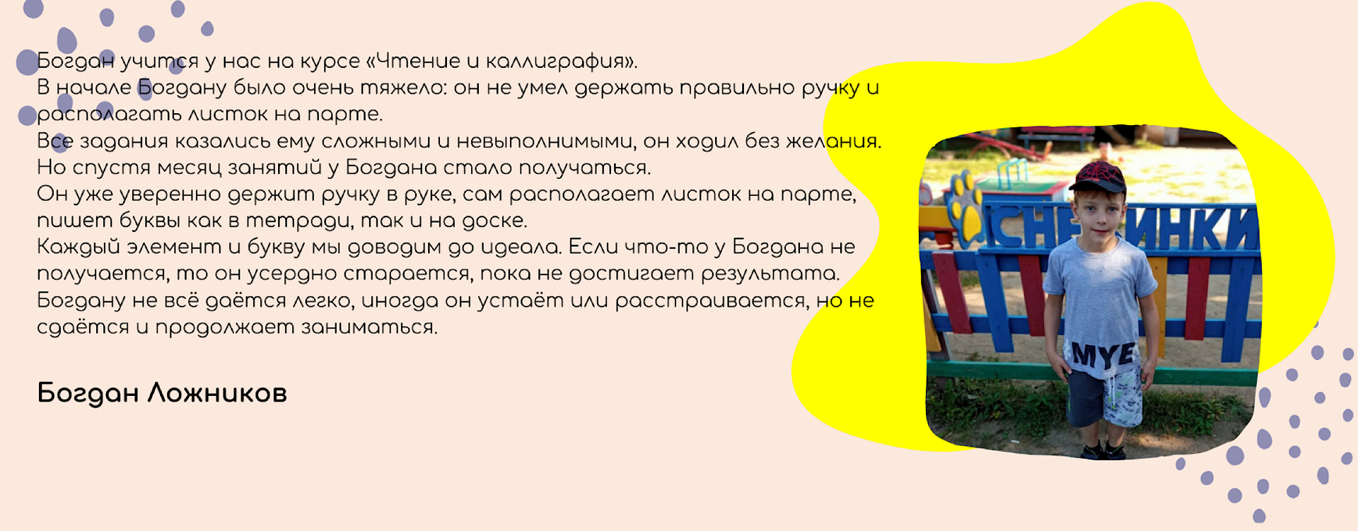 По результатам каждого занятия вы получаете в мессенджер подробную обратную связь в текстовом, фото и видео варианте от преподавателя.