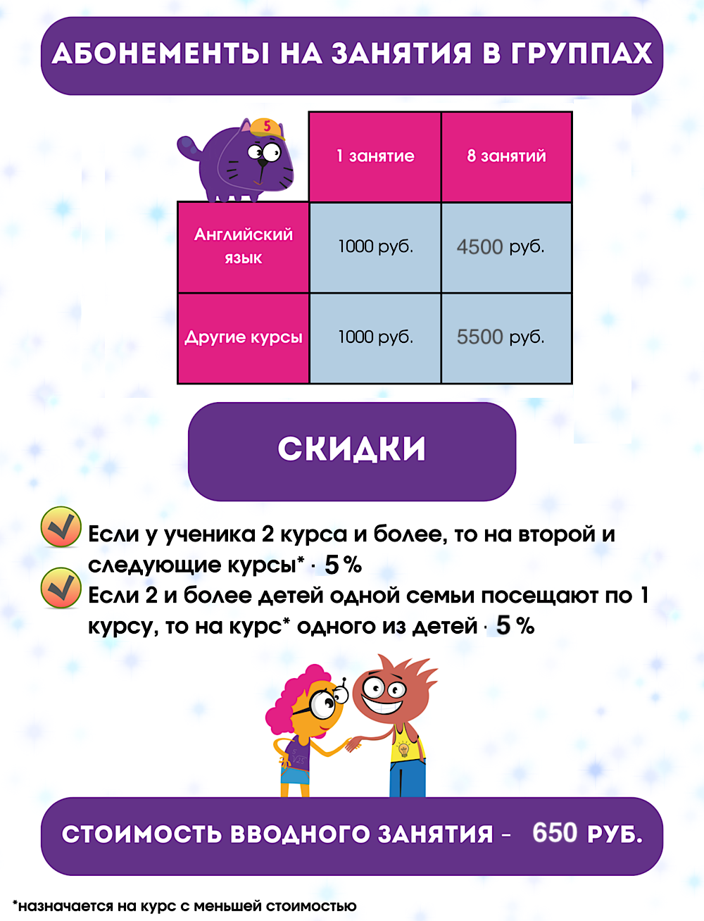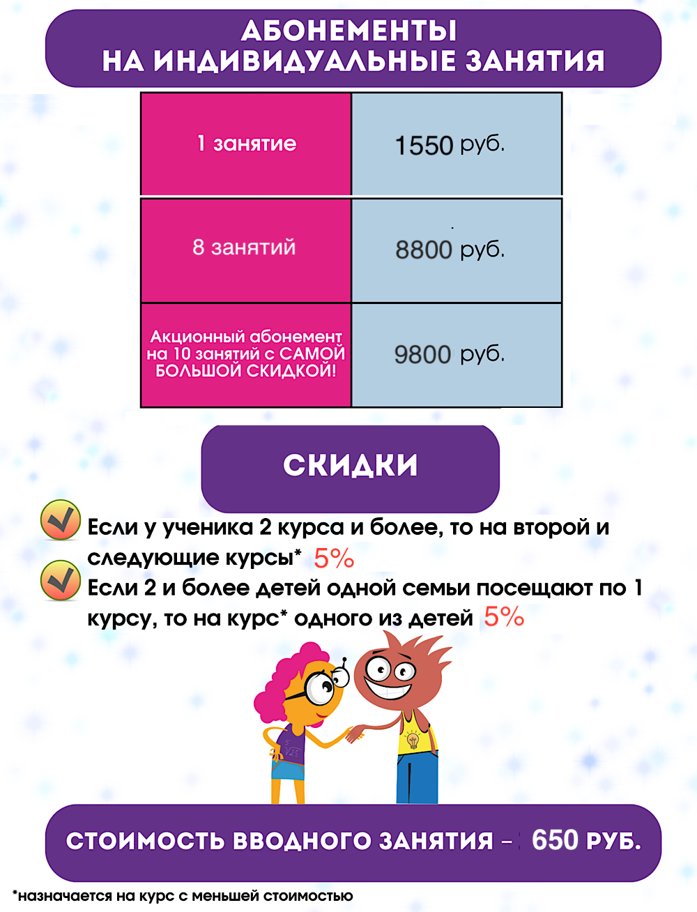 (*занятия любого формата: очно, онлайн, групповое, индивидуальное).
