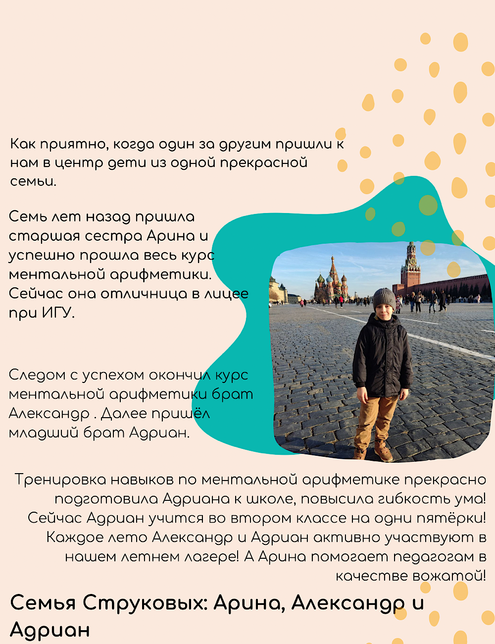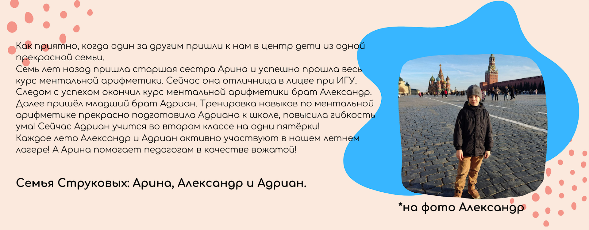 Только наш центр дает параллельно 2 системы счета: альтернативную - ментальная арифметика и школьную!